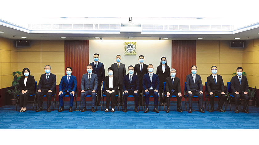 司法警察局五位主管宣誓就職,司法警察局於前日在總部大樓舉行主管就職儀式,在局長薛仲明監誓,並在杜淑森、梁文照、賴文威三副局長及各部門主管的見證下,刑事調查廳廳長薛專耀、有組織罪案調查處處長鄧錦華、國家安全情報工作處處長黃健漢、國家安全罪案調查處處長曾家豪、刑事技術支援處處長尤伶等五位新任主管分別宣誓就職。