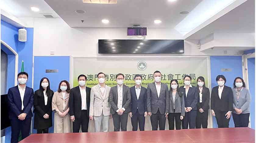 【特訊】澳門青年志願者協會一行在立法會議員兼該會監事長林倫偉、會長裴承賢、理事長黃章瑜帶領下日前拜訪社會工作局,獲局長韓衛、副局長鄧玉華等熱情接待。