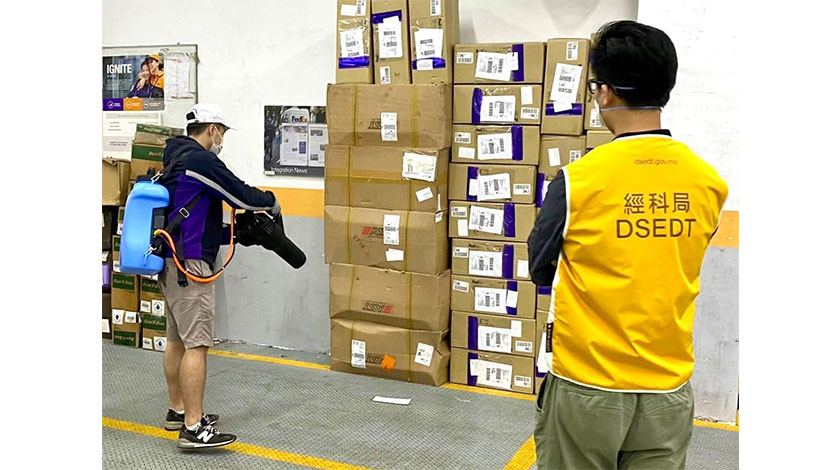 【特訊】為配合特區防疫政策,經濟及科技發展局持續加強巡查快遞店、網購代收店等場所,督促商號遵照衛生當局防疫指引嚴格執行防疫工作,加強對場所及貨品清潔消毒,以防止新型冠狀病毒經貨物傳播。