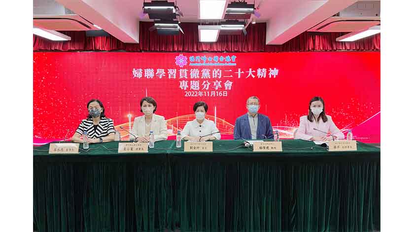 分享會於當日下午六時三十分在婦聯大廈二樓禮堂舉行,婦聯會長劉金玲、理事長袁小菱、監事長容永恩等眾多理監事出席,由副理事長羅萍主持。劉金玲表示,二十大是在邁上全面建設社會主義現代化國家新征程、向第二個百年奮鬥目標進軍的關鍵時刻召開的一次大會,意義重大。報告內容充分體現中央始終關心港澳發展和民生福祉,為澳門創造更多發展機遇和空間。作為擁有愛國愛澳優良傳統的社團,婦聯必將深入學習貫徹黨的二十大精神,抓緊“一帶一路”、大灣區和深合區等重大機遇,將澳門建設好、發展好,為推進“一國兩制”事業行穩致遠、為實現中華民族偉大復興中國夢貢獻巾幗力量。