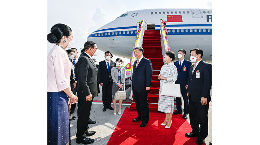 習近平抵達曼谷出席亞太經合組織第二十九次領導人非正式會議並對泰國進行訪問,泰國總理巴育夫婦、副總理兼外長敦夫婦、文化部部長伊提蓬夫婦等熱情迎接。新華社