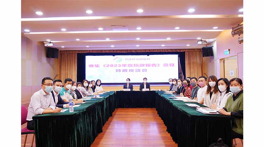 【特訊】特區政府日前發佈《二〇二三財政年度施政報告》,為了收集居民對剛出台的施政報告意見,共建好家園協會假渡船街婦聯綜合服務大樓五樓禮堂舉行時政座談會,主題是“收集《二〇二三年度施政報告》意見”。立法議員、共建好家園協會理事長黃潔貞和協會副理事長馬耀鋒擔任主講嘉賓,副理事長周惠儀、二十多名理監事和會員參與。與會者們認同施政報告以經濟復甦為先,透過四大產業推進經濟適度多元化發展,並就經濟發展、婦女兒童、青年發展、社會服務、金融等議題發表意見,場面熱烈。