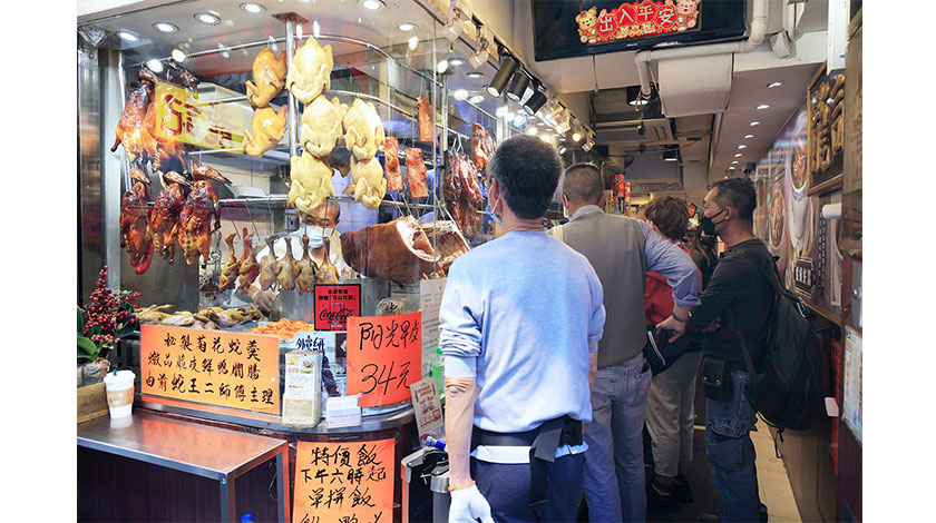 在香港,冬至飯的餐桌上,雞肉、豬肉、海鮮都是主打食材。早飯時間過後,港島著名的鵝頸橋街市,不少賣新鮮肉菜的店鋪已圍滿顧客。