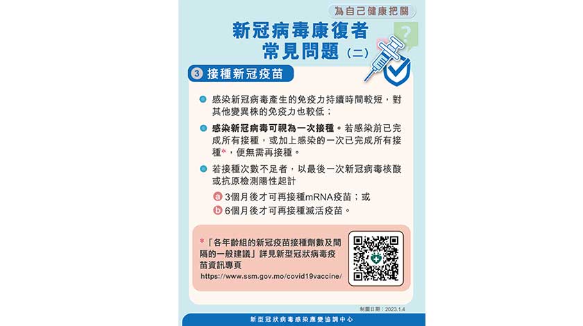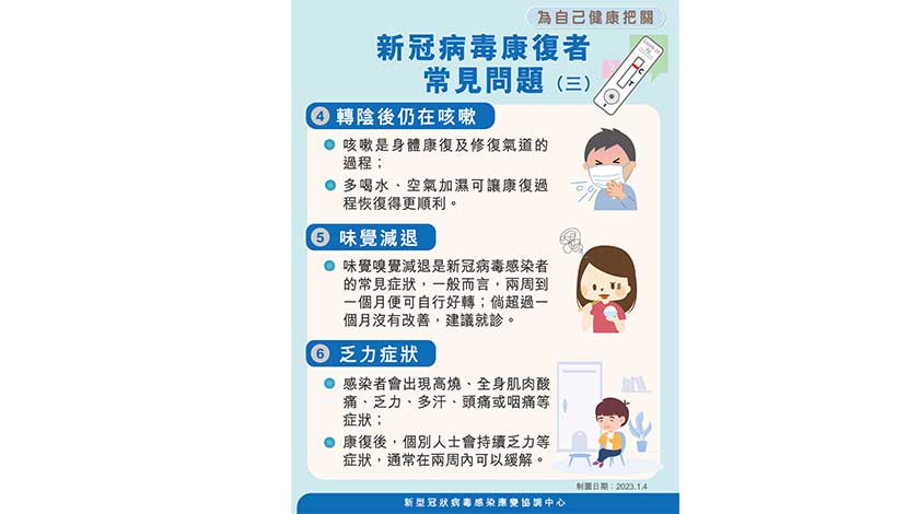 委員曾家樺表示,本澳旅遊業尤其是國際客料將逐步恢復,本澳或會進入另一波疫情高峰期,期望政府提前做好各項準備,包括積極發動社會力量支援抗疫工作,例如私人醫院、私家醫生、志願者參與社區醫療服務,並研究向中央政府或內地專家團隊提出請求協助的可行,以應付即將全面開放人員流動及新春假期傳播的高峰期。與此同時,加深居民對「新冠」和「長新冠」的認識,避免居民因病而出現的各種恐慌,另外,政府亦有需要針對「長新冠」相關題目的追蹤研究,預防病毒對生理如肺部、心肺功能的影響及神經精神後遺症,以及對研究進行評估不同類型的預防、治療和康復方案等。