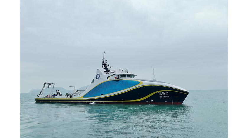 1月12日,圓滿完成各項海試目標任務的全球首艘智能型無人系統科考母船“珠海雲”順利入泊母港——珠海高欄港三一海工碼頭,正式交付使用。“珠海雲”長88.5米,型寬14.0米,型深6.1米,設計排水量約2100噸,最大航速18節,經濟航速為13節。該船擁有寬敞的後甲板,可搭載多種不同觀測儀器的空、海、潛無人系統裝備,可執行海洋測繪、海洋觀測、海上巡檢及部分調查取樣等綜合性海洋調查任務。 中新社