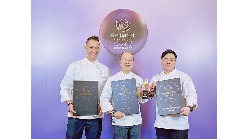 【特訊】「2023黑珍珠餐廳指南」發布暨頒獎盛典9日於北京隆重舉行,揭曉本年度獲獎餐廳榜單。澳門永利皇宮路氹旗下三間餐廳皆獲得殊榮,共摘得五鑽榮耀。高級粵菜食府永利宮及「泓」日本料理雙雙蟬聯「黑珍珠二鑽餐廳」榮譽,永利扒房亦再度獲評為「黑珍珠一鑽餐廳」,而永利宮行政總廚譚國鋒更獲授2023黑珍珠餐廳指南「年度主廚」獎項,成為澳門首位獲此殊榮的主廚。多項肯定印證永利多年來追求高品質餐飲標準的堅持及為促進澳門創意城市美食之都持續發展所作出的積極貢獻。