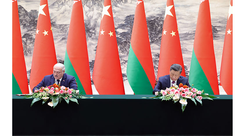 會談後,兩國元首共同簽署《中華人民共和國和白俄羅斯共和國關於新時代進一步發展中白全天候全面戰略夥伴關係的聯合聲明》,並見證簽署經貿、工業、農業、海關、科技、衛生、旅遊、體育、地方等領域多項雙邊合作檔。