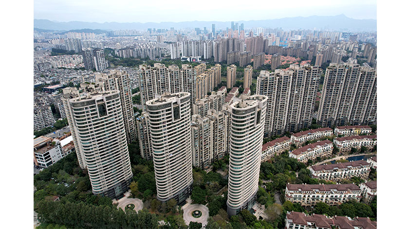 3月1日,中指研究院發佈的數據顯示,2023年2月,百城新建住宅均價為每平方米16174元人民幣,環比持平,結束新房價格自2022年7月份以來的“七連跌”。圖為2月22日,俯瞰福州江濱樓盤。 中新社