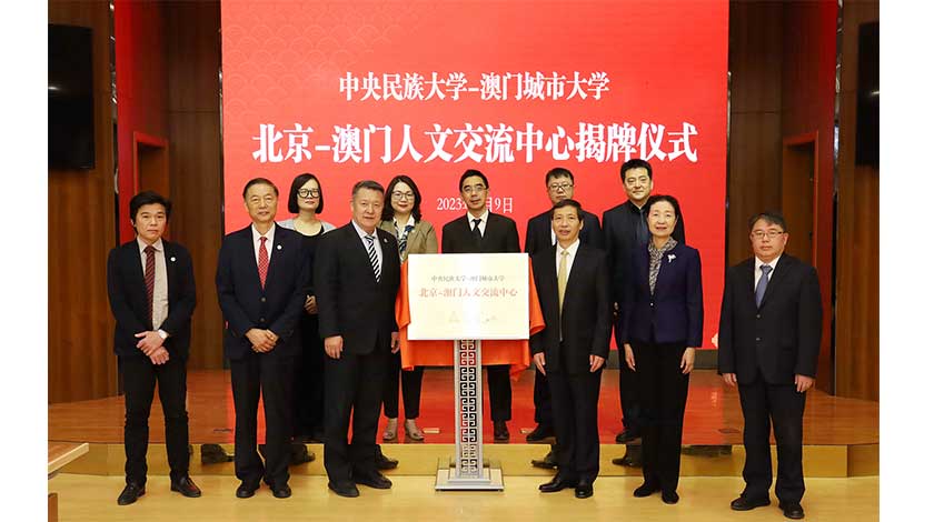 期間,劉駿校長與郭廣生校長分別代表雙方,就共同建設“中央民族大學-澳門城市大學‘北京-澳門人文交流中心’”(以下簡稱“人文交流中心”)簽署合作協議。同場舉行中心揭牌儀式,中心的建設將有助於推動“一國兩制”偉大實踐,促進澳門與內地在人文和教育方面的交流合作。