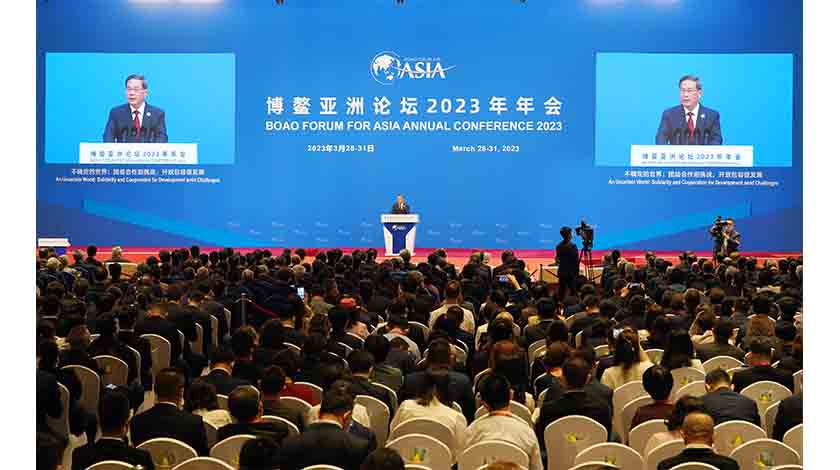 3月30日上午,中國國務院總理李強在海南博鰲出席博鰲亞洲論壇2023年年會開幕式,併發表題為《以人類命運共同體理念為引領 為世界和平與發展注入更多確定性》的主旨演講。 中新社