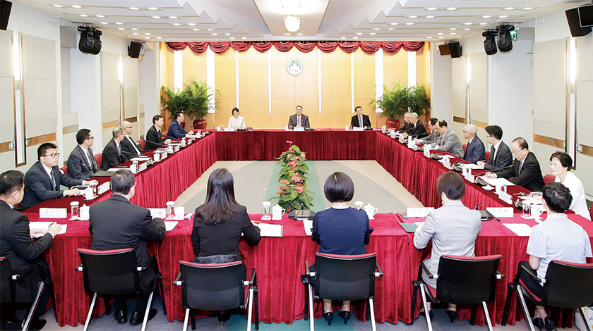 【特訊】行政長官崔世安就制訂明年度施政報告聽取智庫組織的意見和建議,昨日上午在政府總部與澳門經濟學會代表和澳門發展策略研究中心代表座談,就宏觀經濟環境、粵港澳大灣區建設和本澳社會民生多項議題與專家學者交流。