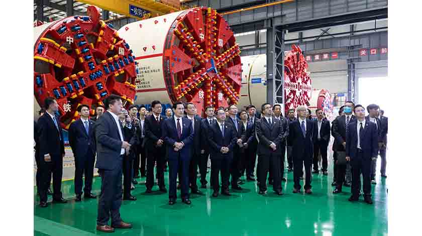 4月2日,在湖南省長沙市,馬英九先生一行走進鐵建重工的車間。新華社