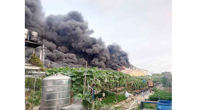 4月6日下午4點時許,台灣台南市永康區中山北路264巷一間工廠傳出火警,火勢迅速延燒,黑色濃煙瀰漫天際,非常駭人,台南市消防局獲報派遣永康分隊等22車47人馳援,目前工廠已全面燃燒,所幸無人員受困,由於工廠周邊緊鄰工廠、果園,消防人員已布好水線正全力灌救中。(香港中通社)
