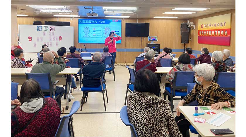 【特訊】婦聯樂頤長者日間中心今年繼續舉辦“豐裕健康‧共享未來”系列活動,首場活動“致營之道之不老傳耆”日前順利舉行,冀透過鼓勵長者參加中心整年度不同的健康活動,並以集星方式作為紀錄,最後在嘉許禮中獎賞為自身健康作出努力的長者,藉此提高他們多做運動的動機,加強保健意識。