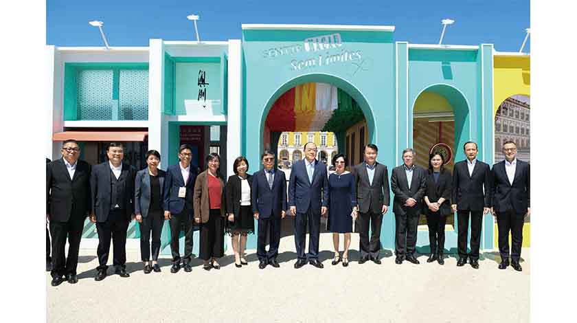 賀一誠抵達葡萄牙後隨即到里斯本商業廣場參觀“感受澳門樂無限 - 里斯本澳門展覽”