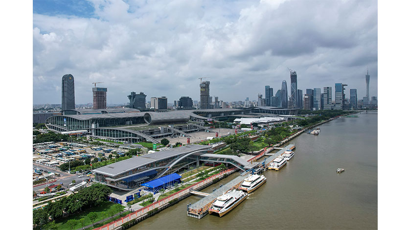 5月4日,廣東省廣州市,航拍琶洲港澳客運碼頭。當日,琶洲港澳客運碼頭正式開航。該碼頭是粵港澳大灣區標誌性直連交通設施之一,也是廣州中心城區連接香港的唯一客運碼頭,首期開通往返香港中港城和香港機場海天碼頭兩條航線,投入“海珠湖”“海珠灣”碳纖維高速客船運營,全程約兩小時。 中新社