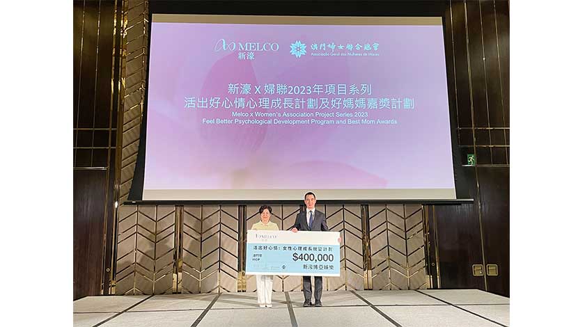 【特訊】新濠博亞娛樂(「新濠」)5月11日與澳門婦女聯合總會(「婦聯」)宣佈其合作項目的最新發展,包括再度推出「活出好心情心理成長計劃」以正視心理健康這個社會上備受關注的議題,以及舉辦第四屆「好媽媽嘉獎計劃」。新濠主席兼行政總裁何猷龍及婦聯會長劉金玲,聯同雙方管理層代表包括婦聯理事長袁小菱、副理事長兼秘書長庄玲玲,以及新濠執行副總裁兼首席事務長高橋明子及首席顧問黃昇雄博士出席參與。