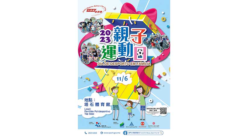 【特訊】由體育局主辦,教育及青年發展局、澳門街坊會聯合總會、澳門工會聯合總會及澳門婦女聯合總會協辦的 “2023親子運動日” 活動將於6月11日(星期日)上午9時在塔石體育館舉行。