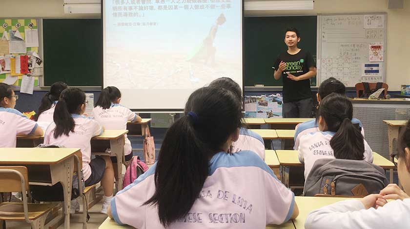 「海洋文化保育計劃」由綠色未來主辦、獲民政總署贊助,已於本年2-11月圓滿舉辦。活動獲培正中學、化地瑪聖母女子學校、聖羅撒女子中學中文部、聖瑪大肋納學校、澳門基督教會新橋宣道堂、慈幼中學、下環浸信會社區中心等七所學校及社團參與。是次計劃結合理論講座及行為實踐,共進行了十一場「育養海洋」講座和四場戶外淨灘。前者透過多媒體工具進行互動講座,讓參加者瞭解澳門沿岸海域的海洋生物種類,透過了解牠們面臨的生存威脅,認識澳門以至全球的海岸線現況,探討海洋垃圾的來源和弊害。有學校老師表示,澳門填海活動頻繁,很多學生都不清楚澳門填海前後的樣貌,講座讓學生們透過歷史相片和模擬圖片去了解澳門海岸線的變遷,是一個很有社會意義和歷史價值的課題;尤其現今生態問題甚受關注,多角度關心社會議題有助學生建立獨立的思維,自己亦有從中學習和反思,相信對往後設計教案的內容和方向有所裨益。