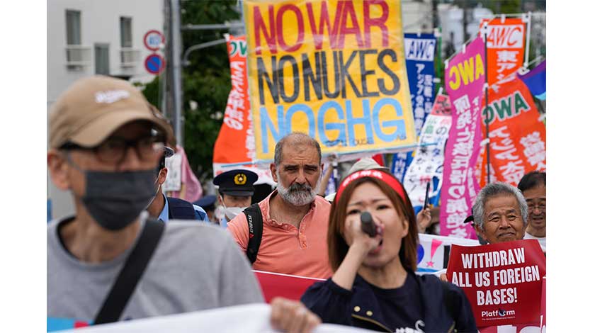 5月19日,民眾在日本廣島參加集會反對七國集團峰會。當日,七國集團(G7)峰會在日本廣島召開,遭到多國民眾聚集反對。新華社