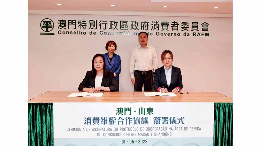 【特訊】為讓澳門特區與山東省兩地相互轉介的消費糾紛建立更便捷與妥善的處理機制,澳門消費者委員會與山東省消費者協會日前簽署《山東省消費者協會與澳門特別行政區政府消費者委員會消費維權合作協議》。