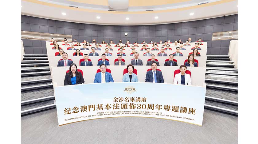 【特訊】金沙中國於6月2日在澳門威尼斯人艾德森高等教育中心舉辦「金沙名家講壇-紀念澳門基本法頒佈30周年」,特別邀請了第十三屆全國政協港澳台僑委員會副主任、前澳門基本法諮詢委員會常務委員兼經濟專責小組召集人賀定一擔任主講嘉賓,吸引近100名金沙中國管理層成員出席。