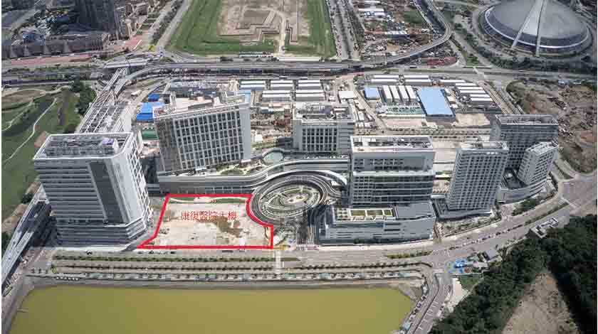 公共建設局網站介紹,離島醫療綜合體 - 康復醫院大樓為離島醫院第二期項目,位於路氹城連貫公路鄰近石排灣水庫的填海土地,大樓座地面積約為三千二百平方米,樓高十五層及地庫兩層,總建築面積約為四萬四千四百平方米,設有四條行人天橋連接綜合醫院大樓及公共巴士站。