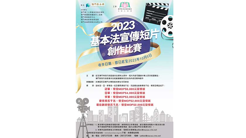 【特訊】為紀念《澳門特別行政區基本法》頒佈30周年,推廣基本法的知識,藉製作宣傳短片廣泛宣傳基本法,澳門基本法推廣協會今年舉辦 “基本法宣傳短片創作比賽”,歡迎市民踴躍參加,比賽收件日期至10月5日。活動由澳門基金會贊助。