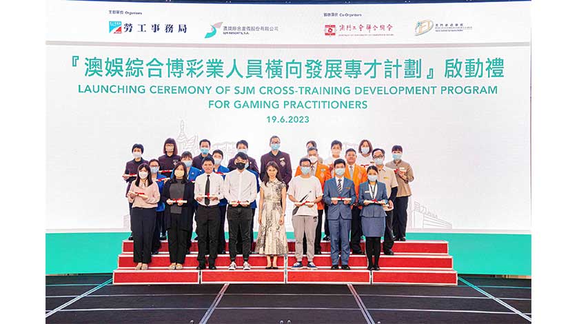 澳娛綜合6月19日於上葡京綜合度假村(「上葡京」)舉行「澳娛綜合博彩業人員橫向發展專才計劃」啟動禮。出席主禮嘉賓包括勞工局局長黃志雄、中聯辦經濟部副處長楊毅、工聯會長何雪卿、澳門旅遊學院院長黃竹君博士,以及澳娛綜合常務董事何超鳳。