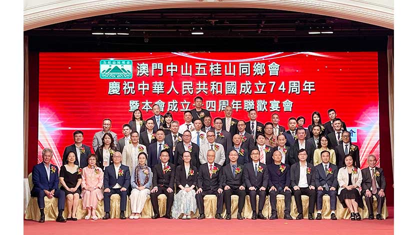 【特訊】澳門中山五桂山同鄉會昨(22日)舉行慶祝中華人民共和國成立74周年暨該會成立14周年聯歡宴會。該會會長負責人表示,未來繼續秉承「愛國、愛澳、愛鄉」的優良傳統,發揮同鄉會橋樑紐帶作用,為澳門與家鄉發展貢獻力量。晚宴於昨晚8時假萬豪軒酒家舉行,中聯辦協調部一級調研員尹小蘭,中山市政協三級調研員龍敏、市委統戰部四級調研員黃文偉,五桂山街道黨工委委員李淵清,澳區全國政協常委何潤生,全國政協澳區委員梁少培、陳明金,立法會議員鄭安庭、羅彩燕、梁鴻細,澳門中山五桂山同鄉會會長楊玉初、常務副會長廖國洲等出席。