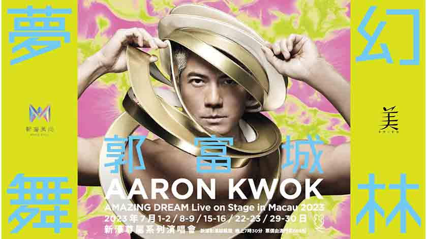 新濠風尚呈獻《新濠尊屬系列郭富城夢幻舞林演唱會2023》重裝登場,將於7月逢星期六及日上演共10場演唱會。成為「新濠風尚」會員可專享VIP貴賓包廂派對套票等專屬禮遇。購票及相關詳情,可瀏覽: https://www.studiocity-macau.com/tc/promotions/melco-style-residency-concert-series-aaron-kwok