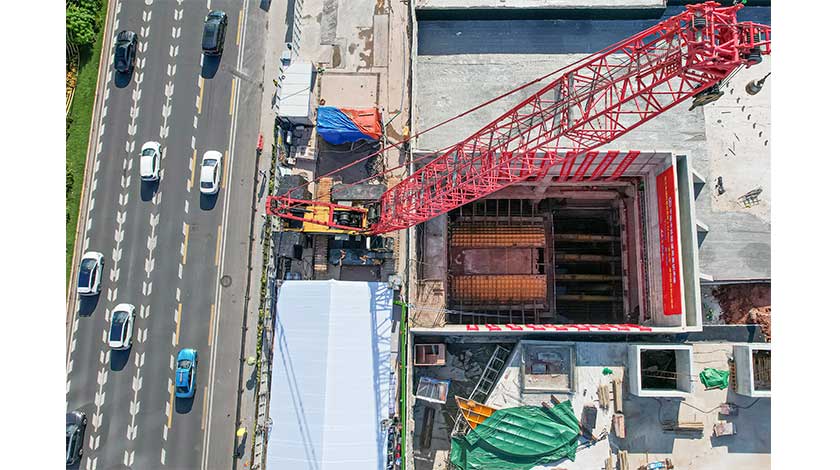 7月6日,廣東省廣州市,珠三角城際琶洲支線“匠心號”13.65米大直徑盾構機到達接收鋼套筒,標誌著廣州市中心城區首條大直徑盾構隧道完成盾構到達接收,也標誌著珠三角城際琶洲支線全線按期順利貫通。圖為“匠心號”盾構機到達接收鋼套筒。 中新社