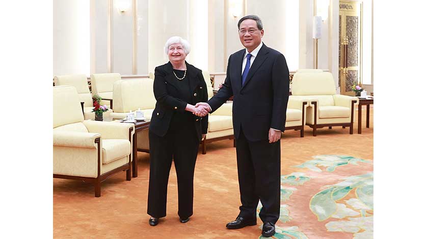 【香港中通社7月7日電】 中國官媒7日消息,國務院總理李強當日在北京會見美國財政部長耶倫。