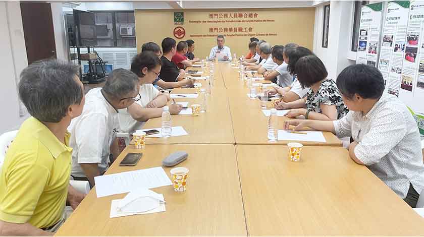 【特訊】澳門公務華員職工會(公務工會)日前召開理監事會議,會長張國然表示,各理監事對政府明年是否調整公務人員薪酬甚為關注,指公務人員已凍薪三年,理解政府基於疫情影響而採取緊縮財政開支措施,但現時經濟和旅遊業已逐步復甦,澳門大學澳門研究中心和經濟學系今年三月發表宏觀經濟預測,預計今年本澳的經濟增長處於20.5%至44.1%之間,最近(七月)修訂預測,今年本澳實質經濟增長47%,可見本澳經濟發展勢頭良好,建議政府明年調升公務人員薪俸,紓緩公務人員生活壓力,提升人員士氣。