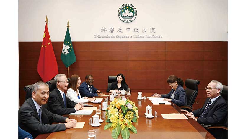 【特訊】本月十二日下午,澳門律師公會理事會主席黃顯輝律師、會員大會主席歐安利律師、理事會秘書長潘愛儀律師、律師業高等委員會副主席鄺玉球律師、理事會理事山度士律師、周笑銀律師、蘇頌恩律師及監事會監事馮璦琳律師禮節性拜訪終審法院。