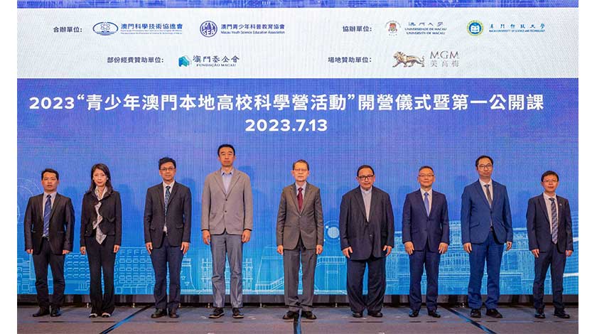 【特訊】『2023青少年澳門本地高校科學營活動』由澳門科學技術協進會(簡稱澳門科協)和澳門青少年科普教育協會(簡稱科普協會)共同主辦,澳門大學與澳門科技大學協辦。活動『開營儀式暨第一公開課』於7月13日上午在美獅美高梅宴會廳成功舉行。