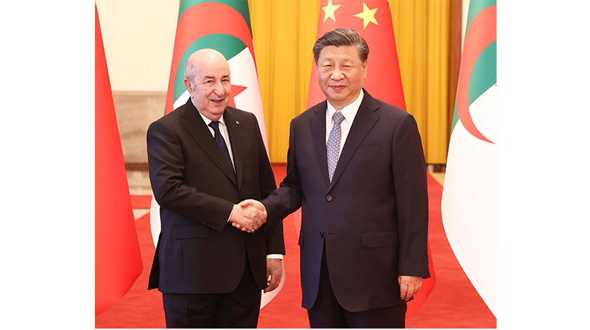 習近平指出,今年是中阿建交65周年。65年前,反對帝國主義和殖民主義、爭取民族獨立解放的共同事業使我們兩國走到一起。65年來,中國和阿爾及利亞始終患難與共、守望相助,相互理解、相互支持,是追求共同發展和民族振興道路上的真誠朋友、天然夥伴。中方正在以中國式現代化全面推進中華民族偉大復興,阿方正在著力推進建設“新阿爾及利亞”。中方願同阿方一道努力,發揚光大傳統友誼,推動中阿全面戰略夥伴關係取得更大發展。