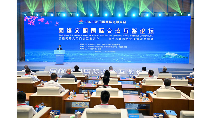 7月18日,2023年中國網絡文明大會網絡文明國際交流互鑒論壇在廈門舉辦。中外嘉賓圍繞加強網絡文明交流、互鑒、共存等話題展開探討。中新社