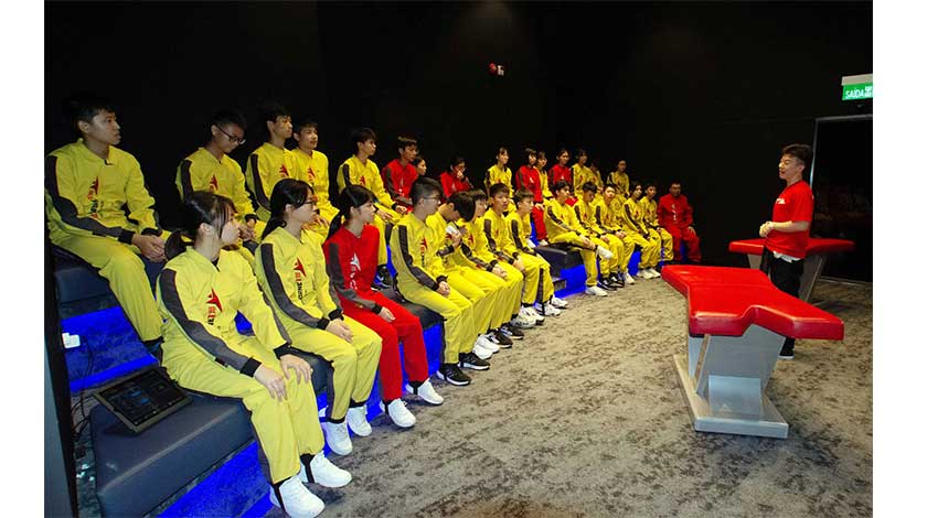 青年科技村學員一行首先前往GoAirborne澳門室內跳傘中心參觀其大型發動機及強力渦輪風扇設備,再隨工作人員到地庫了解高速旋渦狀風被整流後輸出平衡風的過程,學習與飛行相關的力學及空氣阻力等科學知識,並在專業教練的指導下體驗室內跳傘運動的樂趣。