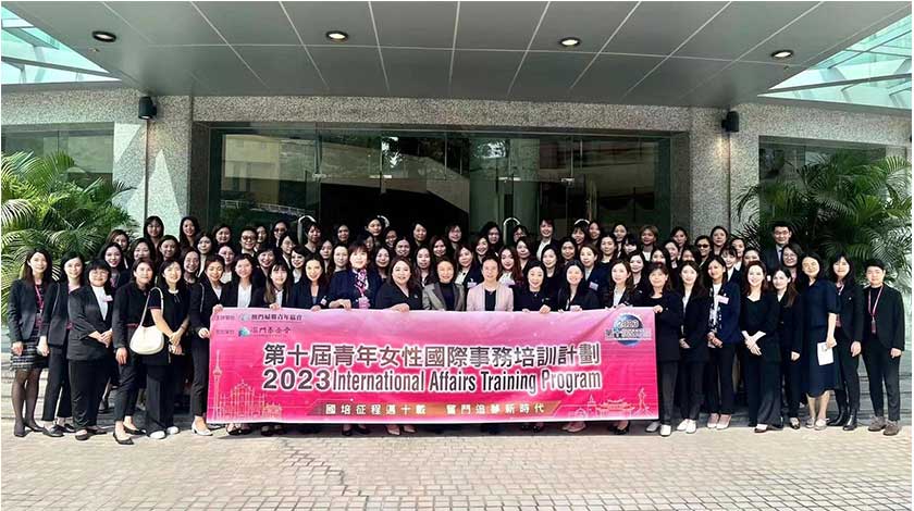 【特訊】由婦聯青年協會主辦、澳門基金會贊助的“二○二三青年女性國際事務培訓計劃”,日前前往外交部駐澳特派員公署進行專題學習講座。外交公署特派員夫人李萍、政策研究室主任馬乃芳參贊,婦聯青協理事長歐陽月勝,國培籌委會主席鄧卓霖以及八十位學員出席活動。