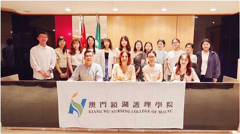 外訪活動於7月10日至21日舉行,鏡湖護院歐妙玲助理教授、黎想講師和黃潤洪講師帶領護理學碩士、專科及學士課程學生前往葡萄牙里斯本光明醫院進行交流。期間師生分組前往醫院多個部門及臨床科室學習,包括安寧療護病房、重症監護室、急診、內科、泌尿科、婦產科、手術室、兒童和青少年中心,以及心臟導管室等,並與當地護士交流討論,對比分析里斯本與澳門的護理模式差異。交流團還參觀了光明醫院的高仿真教學中心,了解當地醫教結合的教學模式,借鑒經驗以提升鏡湖護院的教學質量。