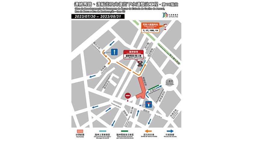 另一方面,早前因巿政署渠道優化工程(1B階段)以及私人公司接駁街渠而須封閉的渡船街路段,隨著兩項工程完工,亦將於同日恢復交通;受施工影響而需改道行駛之巴士路線,以及停用之“連勝馬路”、“渡船街/婦聯”、“渡船街/俾利喇街”巴士站亦將恢復使用。