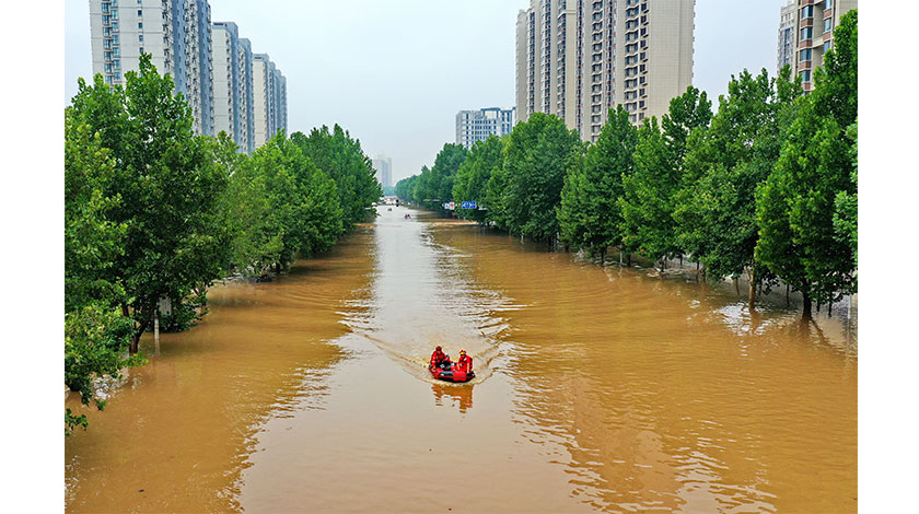河北涿州防洪一線直擊8月2日,救援人員在河北省涿州市市區乘坐衝鋒舟前去轉移受災群眾。 新華社