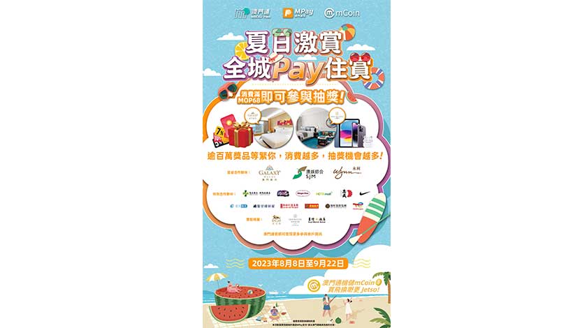 【特訊】為促進社區消費循環,為中小企商戶拓客引流,澳門通將於明(8)日推出「夏日激賞全城Pay住賞」活動,以消費獎賞形式激活社區經濟。參加者凡於指定商戶通過MPay消費,並於澳門通機具上交易,單筆消費金額滿MOP68或以上,即可獲得相應的抽獎次數,於MPay澳門錢包的「Pay 住賞」活動頁面內進行抽獎。活動將於2023年8月8日開始,持續至9月22日,適用餐飲及零售行業商家,獎品逾百萬份。