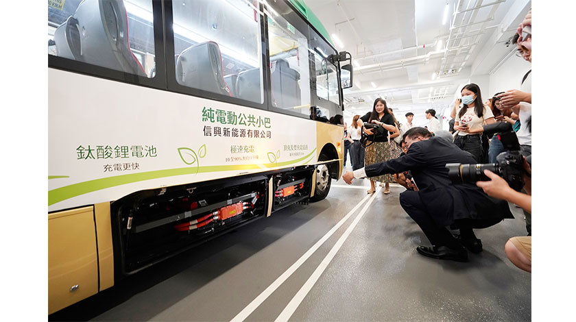 純電動公共小巴亮相香港。8月8日,信興新能源有限公司推出的純電動公共小巴在香港向媒體展示。該純電動公共小巴被命名為“滿客”(Moonca),配備64.77千瓦時的鈦酸鋰電池(LTO),18分鐘即可從10%電量充電至90%,充電8至10分鐘可行駛約50公里,車輛使用車頂充電弓充電和常用的插入式充電兩種方式,能以330安培的大電流進行快速充電。純電動小巴在乘坐舒適度方面較傳統燃油小巴也有優化提升。(中新社)