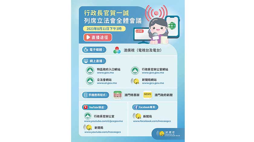 - 新聞局Facebook專頁( www.facebook.com/macaogcs )