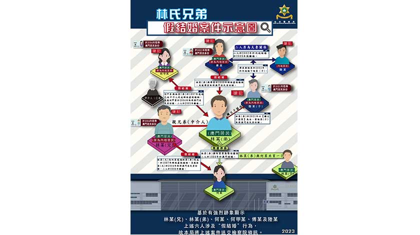 調查又發現,林某與一名本澳女子何某育有一子,但何某竟是林某兄長之妻子,警方亦懷疑當中存在不實婚姻關係。最終證實是林安排女友何某與內地兄長假結婚。