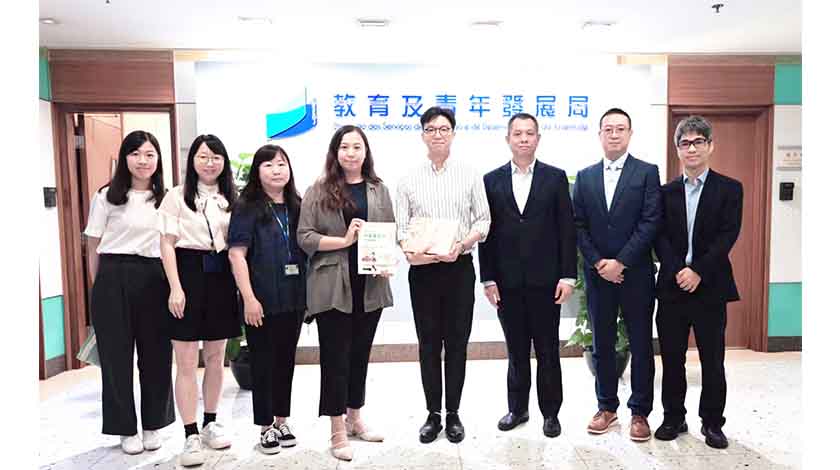 中醫藥學會副理事長蔣永興、梁振權、黎汝碩、梁文俊及澳門文教出版協會副理事長高靜儀等一行,於8月14日拜訪教青局,獲小學及幼兒教育處處長蔡敏芝接見。蔣永興介紹了該會推動「中醫教育普及走入小學校園」和推廣「小學中醫藥文化知識讀本」等工作,包括在推廣過程中遇到的各種情況和經驗,在有關基礎上,該會定立了更長期的發展推廣目標,和選定合適課外教材等。