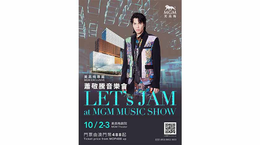 “蕭敬騰Let’s Jam at MGM 音樂會”門票將於8月22日早上10時起公開發售,票價為澳門幣488元起。門票於美高梅官網 (mgm.mo) 及大麥網 (damai.cn)有售。