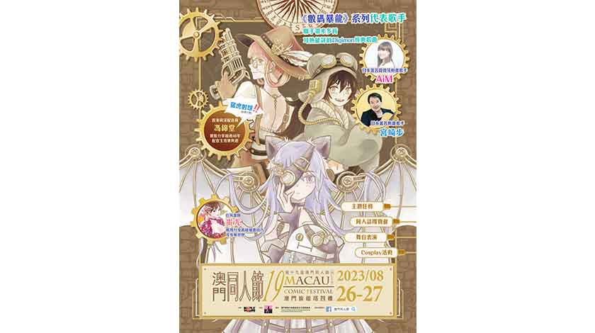 “第十九屆澳門同人節(MCF19)”本年以「蒸汽龐克」為設計主題,除了保留任務供入場觀眾參與外,同時設有相關攝影背景讓愛好者拍攝留念,歡迎入場人士穿著特色服飾入場,門票$35元/日/人,入場時間13:00-18:00,活動節目內容豐富,更多詳情可以瀏覽澳門同人節的Facebook了解。
